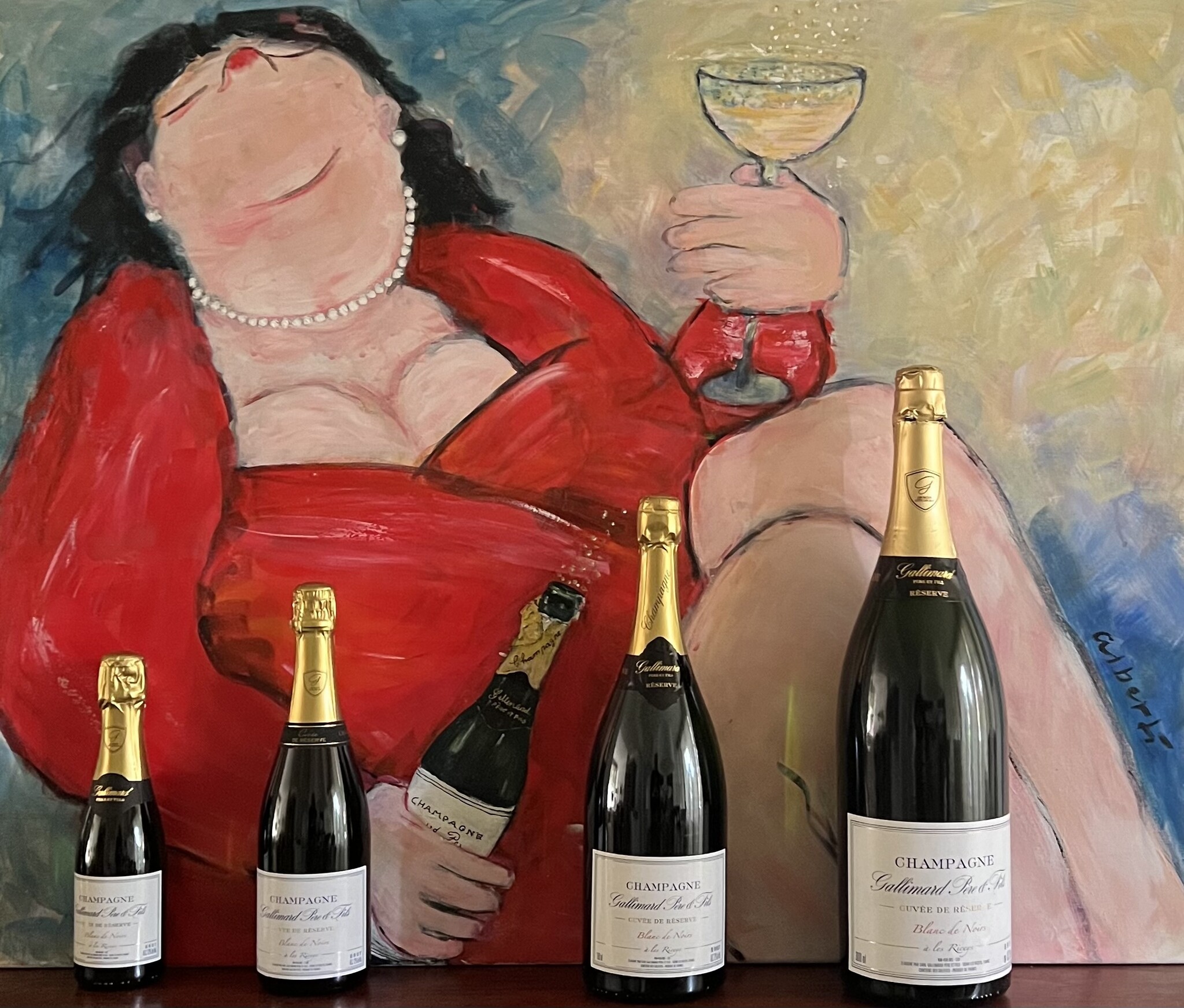 Genummerd en gesigneerd door de kunstenares en gratis voor restaurants waar ook de beste Champagne Gallimard geschonken word. in standaard formaat. (€ 150,00)