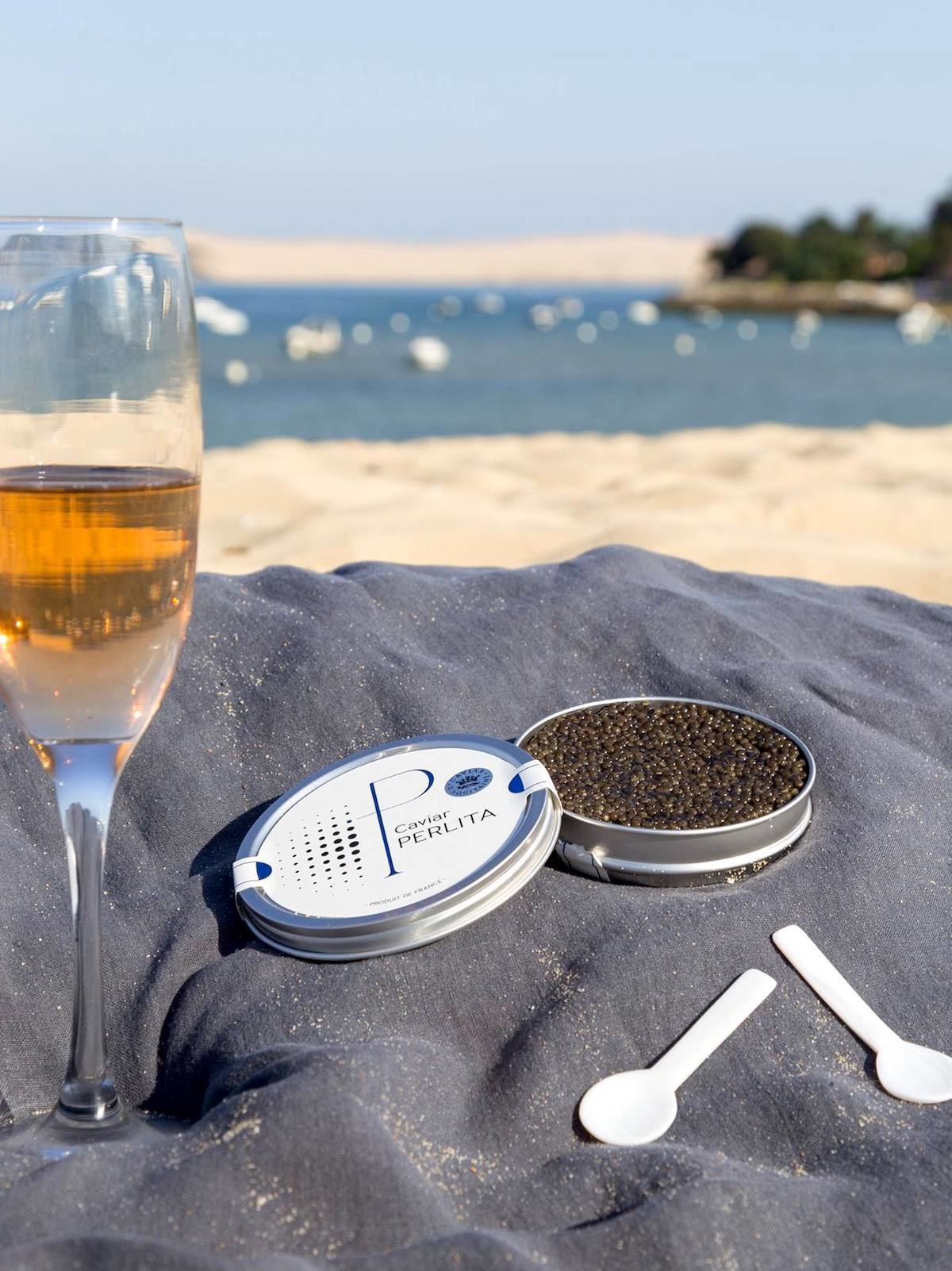 Onze Perlita-kaviaar uit d’Aquitaine is afkomstig van Acipenser baeri-steuren, geboren en grootgebracht in Le Teich, aan de baai van Arcachon (Gironde – Frankrijk).